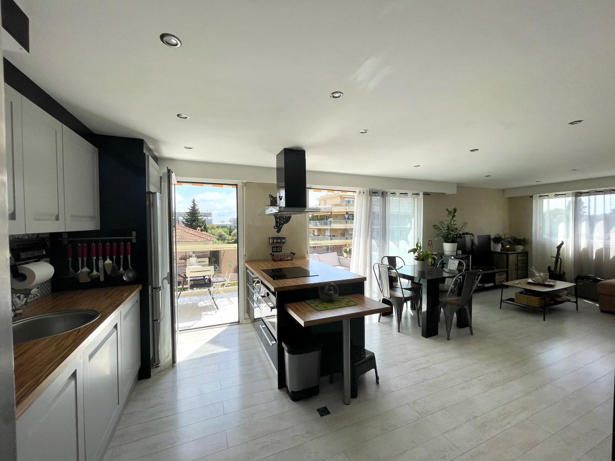 VENDU ! Proche du quartier Tzanck, au dernier étage, ce très bel appartement 3 pièces de 67 m², rénové est composé d'une entrée avec placard, une salle d'eau moderne avec douche à l'italienne, une chambre avec salle de bains, une chambre avec dressing et placard, un séjour ouvert avec cuisine US entièrement équipée, un salon spacieux dans un espace de vie lumineux ouvert sur une terrasse de 11 m² avec vue dégagée et exposée au sud.